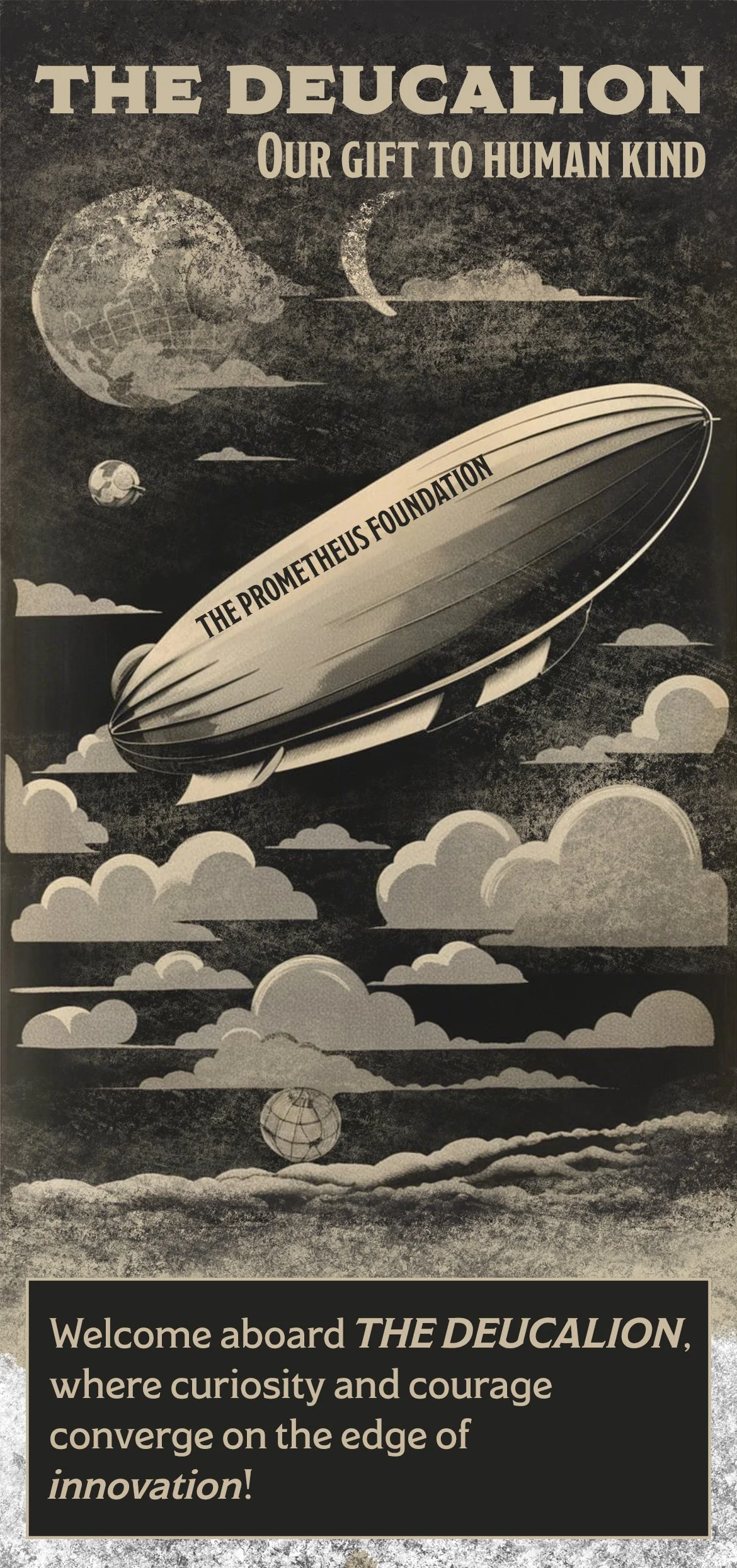 In the 1930s, the Prometheus Foundation, inspired by Greek mythology, sought to be humanity's savior through medical progress. They experimented cruelly on themselves, driven by Major Richard Evans, motivated by his daughter's tragic death and obsession to cure all diseases. To conduct these experiments, they used an airship, the Deucalion, and recruited engineer Adam Buford, who had a history with the Hindenburg disaster. Their experiments caused illness and death among the crew, leaving only Richard and Adam aboard. As Richard's paranoia grew, he hallucinated a cure involving crashing into the Empire State Building. Adam, aware of the impending disaster, devised a plan to save humanity, luring Richard and ultimately murdering him, saving thousands of civilians.